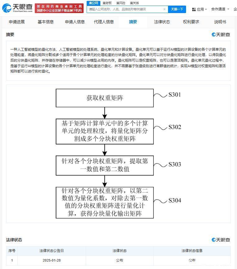 天眼查App显示,近日,华为技术有限公司申请的“人工智能模型的量化方法、处理系统和量化单元”专利公布。